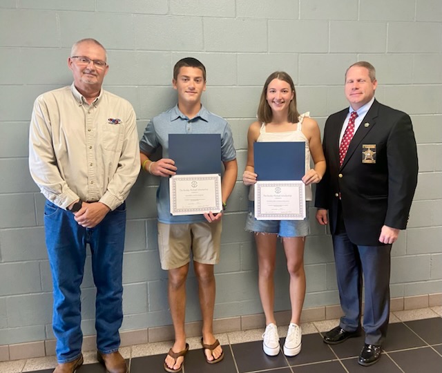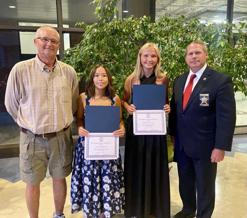 Croatan High School Recipients Kaiden Atchinson and Madeline Cunningham with Gary McKeel and Sheriff Asa Buck